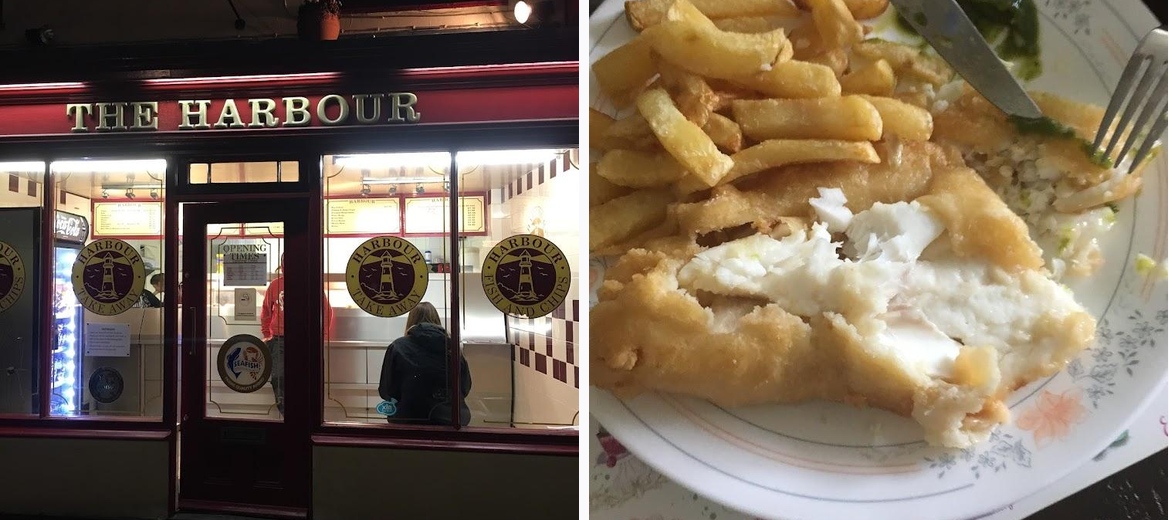 The Harbour specializes in fish and chips, offering a variety of options including cod, huss, and even kids' meals like child's cod bites.